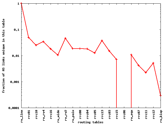 Adding additional routing tables leads to less than 1% increase in the number of unique ASes that we see. This confirms previous observations that most ASes are seen from even a small number of vantage points.